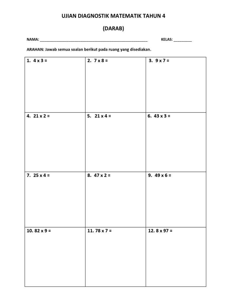Ujian Diagnostik Matematik Tahun 4 Pdf